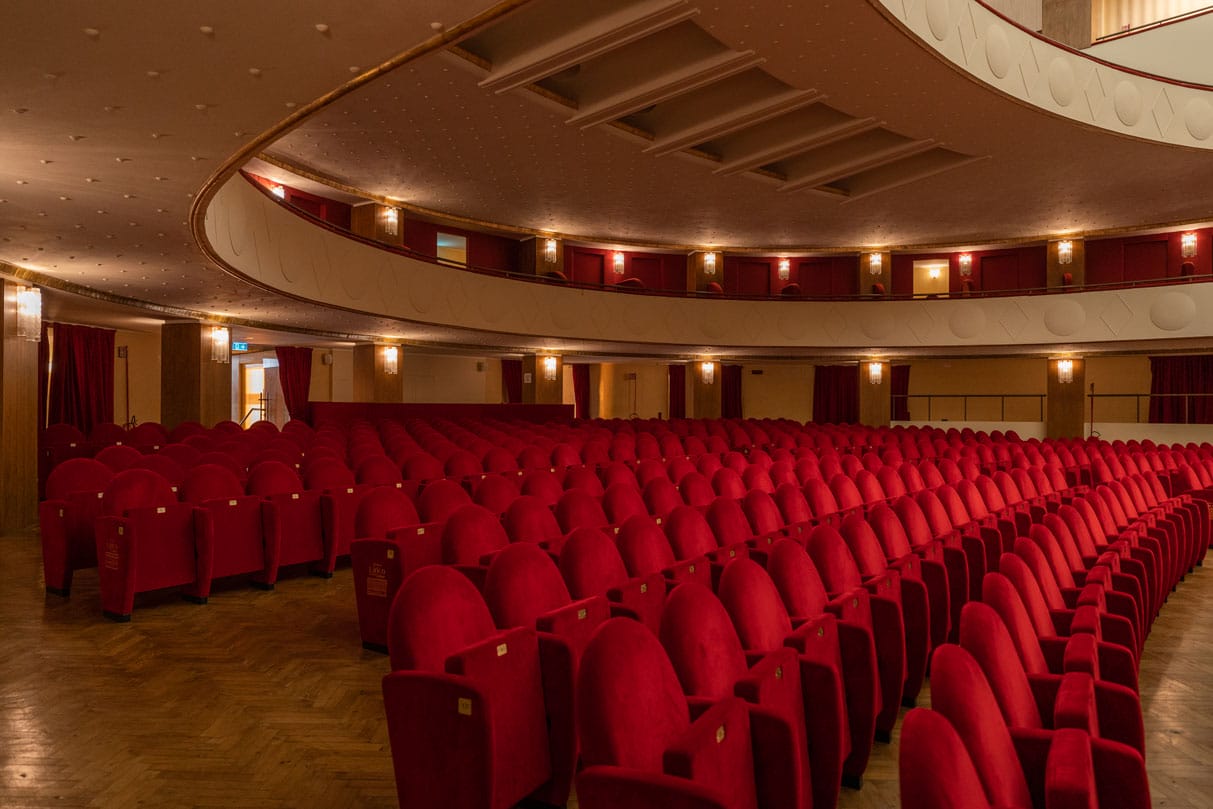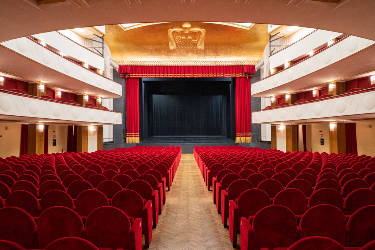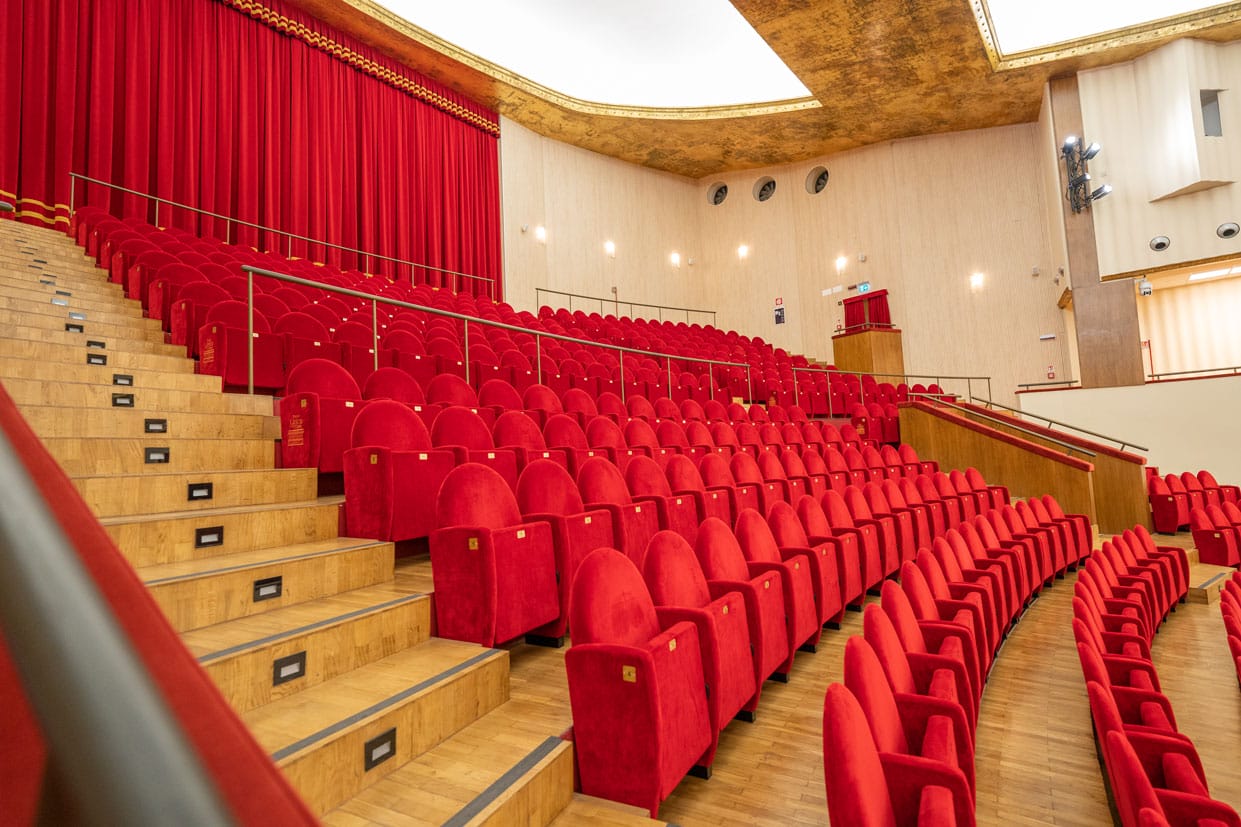Il pavimento in rovere a spina di pesce della platea e le sedie in velluto rosso creano un’atmosfera suggestiva che rende omaggio alla tradizione, pur offrendo una sala ristrutturata e moderna. Questo spazio, che può ospitare circa 1400 persone, è un’ode al passato del teatro.