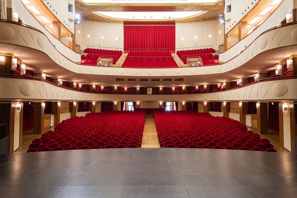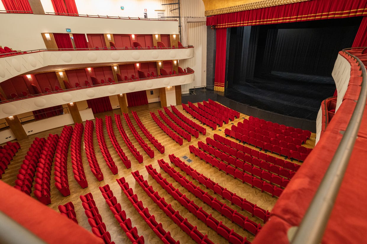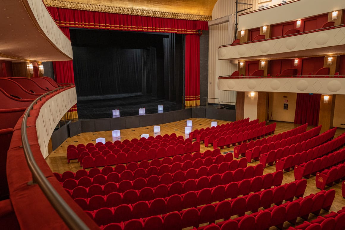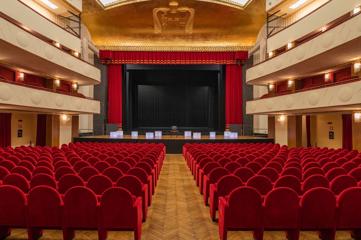 Il pavimento in rovere a spina di pesce della platea e le sedie in velluto rosso creano un’atmosfera suggestiva che rende omaggio alla tradizione, pur offrendo una sala ristrutturata e moderna. Questo spazio, che può ospitare circa 1400 persone, è un’ode al passato del teatro.
